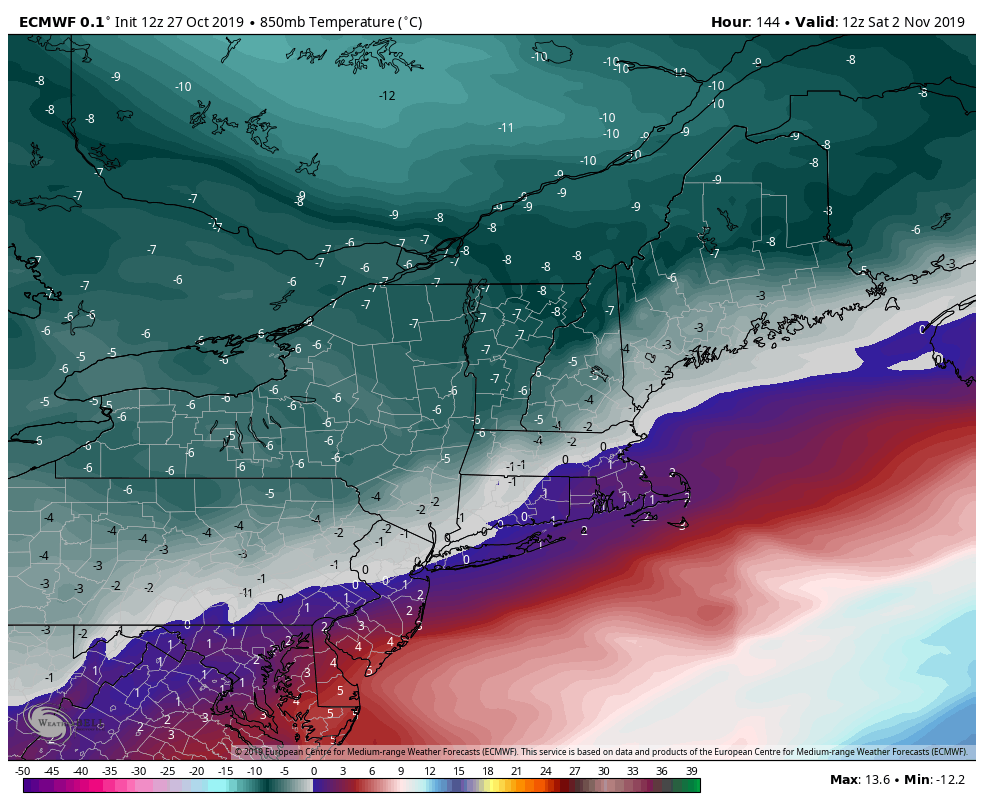 Impacts for Wildcat, Mount Snow: The depth of this cold is less than anticipated, especially with the level of cold brought to the Rockies. Aside from 3,000 feet and higher, there may not be a large window for Mount Snow in this cold punch. Potentially 10-14 hours of snowmaking conditions late Friday night into Saturday morning, however the winds will be howling. Mid-mountain likely won’t be cold enough by noon-time Saturday. Dropping humidity values may aid in some small windows Saturday and Sunday nights. Wildcat should be able to have a solid block of time through Saturday, especially close to the summit, and the summit should have favorable temperatures through most of the weekend and into Monday, with mid-mountain seeing some windows during the overnight.
