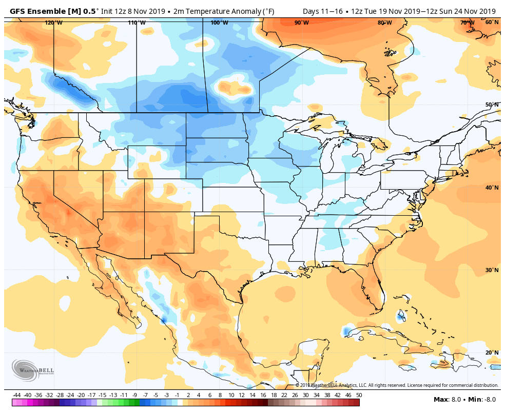 After this point, cold pushes look to be less intense and we may see more waves of cold rather than deep arctic bursts. As mentioned in the beginning, what goes down, must come up (eventually, at least in the atmosphere). Therefore by the end of the month, or early December, I see a 7-10 day period where we don’t see much in the way of snowmaking windows, and may feature more seasonably warm features as we prepare for a more permanent seasonal transition.