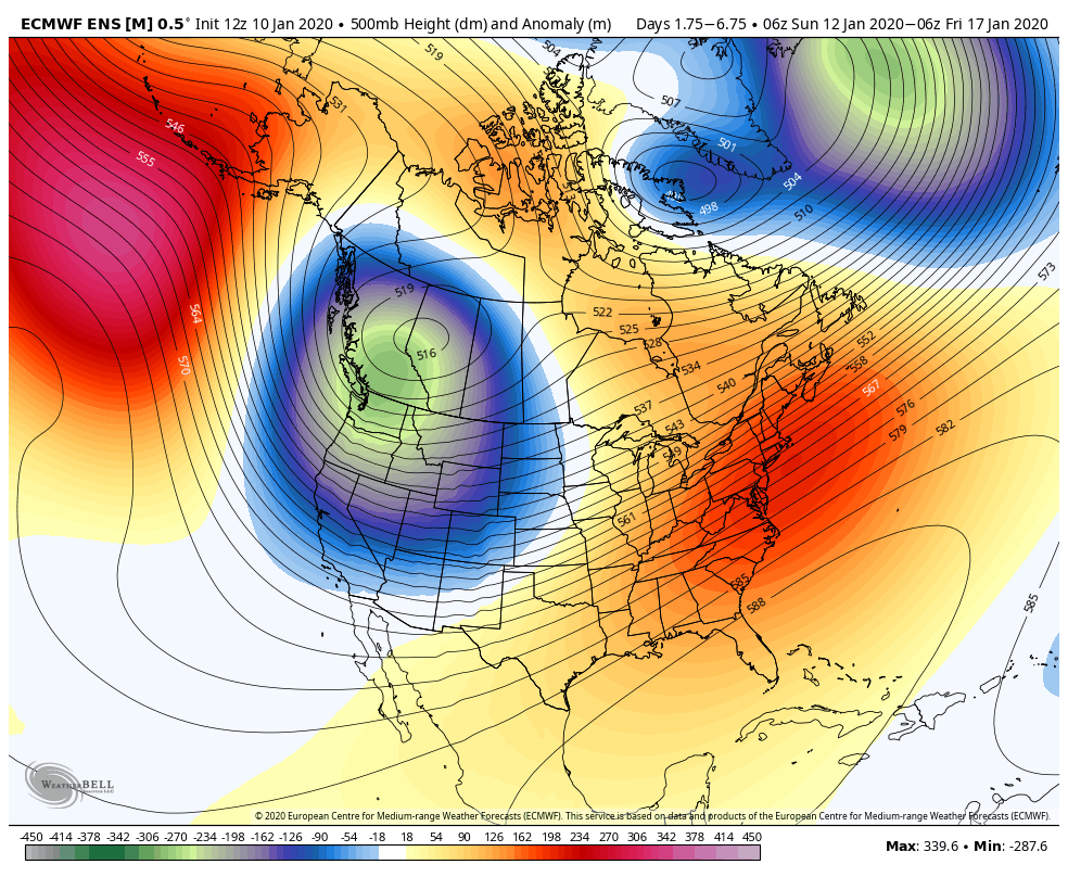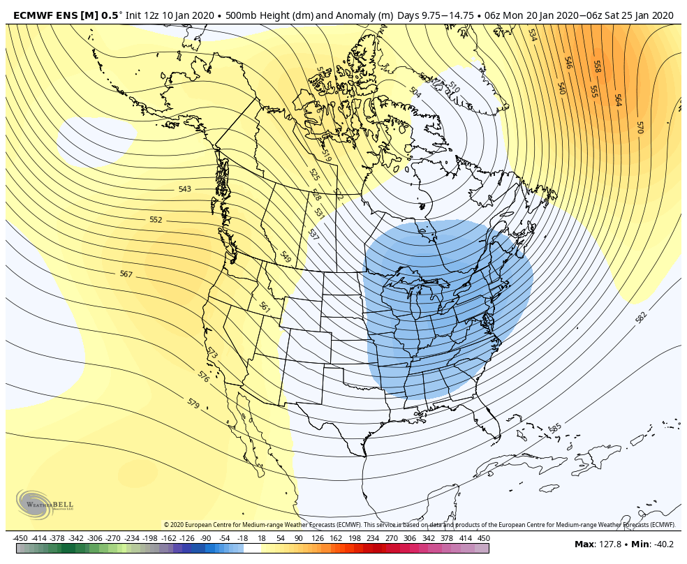 Notice the flip flop in heights (low heights equate to troughing, higher heights to ridging) as we go from pre-MLK weekend to post.