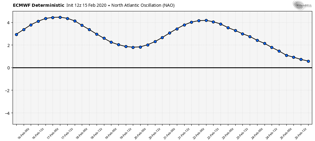 Now the question may be, well if there’s not “blocking” with a negative NAO, then what are we missing? It’s the placement of the high pressure, and the strength of that pressure. Ideally we’d have a strong high to the northwest of Maine and it would drive a coastal storm to develop, and also slow down the movement of it. However, you’ll notice that the NAO does take a dip in that time period, which is why we’re likely in a more favorable spot and seeing less of the “R” word in the forecast.
