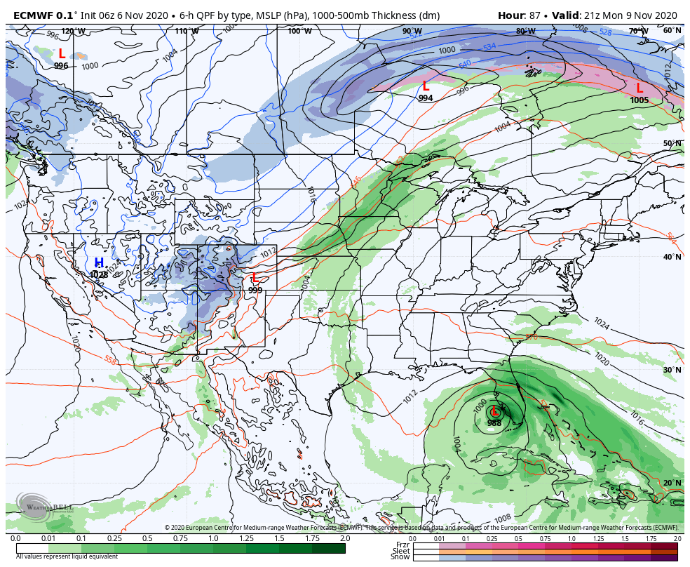 By Monday, the high pressure is also helping to steer then Tropical Storm/Hurricane Eta.
