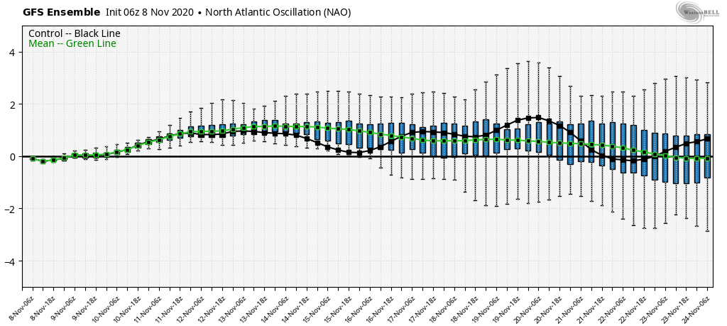 Here’s the GFS Ensemble NAO from this morning.