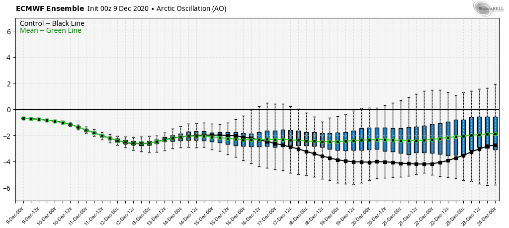 An interesting tidbit I’ll leave you with today is the European Ensemble outlook for the Arctic Oscillation (the beholder of the Polar Vortex). For a model that hates to see long-term cold, this is fairly promising heading into the holiday weeks.