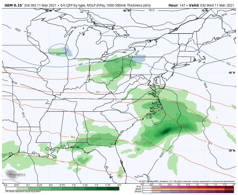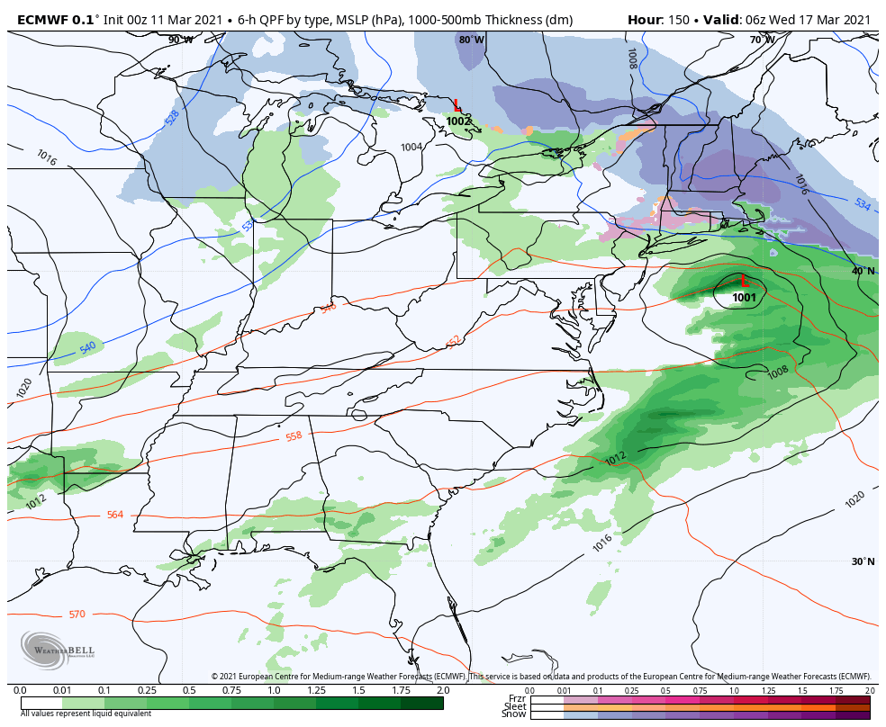 This is where the pattern gets interesting. We have a few impulses of energy to watch – the strength of the cold air mass will dictate if we receive snow, rain or both and everything in between. The models have not had a good handle on this and we’ve seen everything from massive rain events, to nothing, to full-tilt nor’easters.