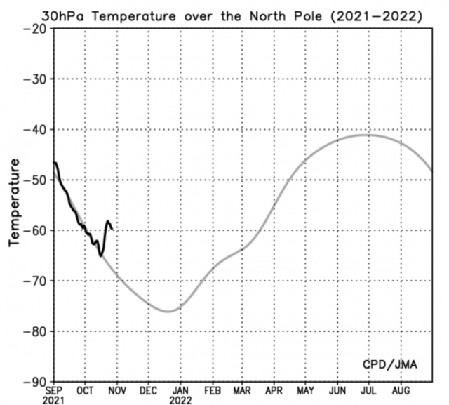 30mb (hPA) Temperature @ North Pole – WeatherBell