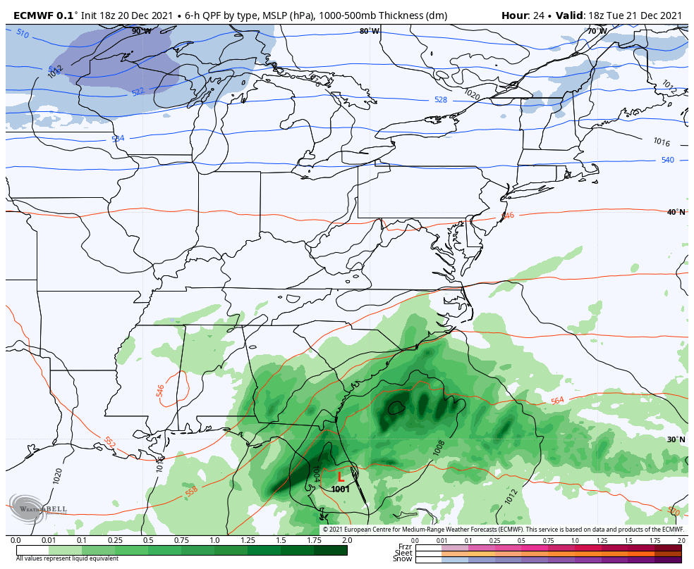 The NAO is significantly negative, so I’m internally hedging toward an even colder solution than what we are seeing in the Euro 12z run. Usually in these scenarios, the negative NAO (and subsequent blocking) shunt storms to the south, which was the concern conveyed in the long term blogs last week.