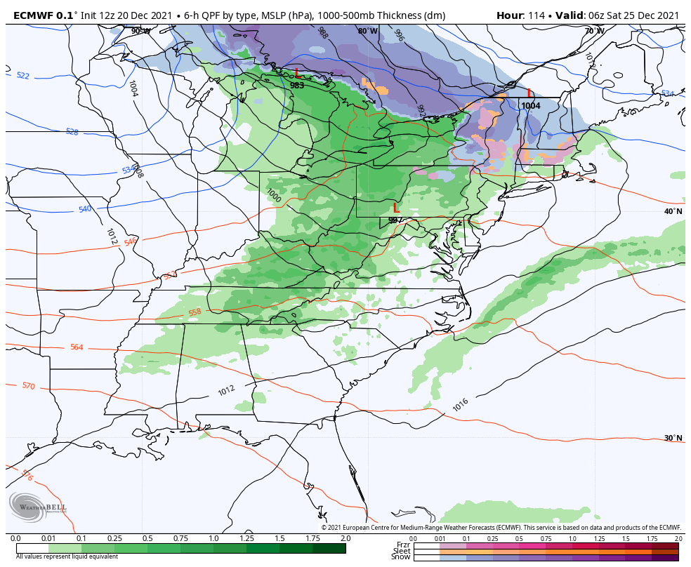 Euro Surface Map/Precip-Type 1am Christmas morning 12/25