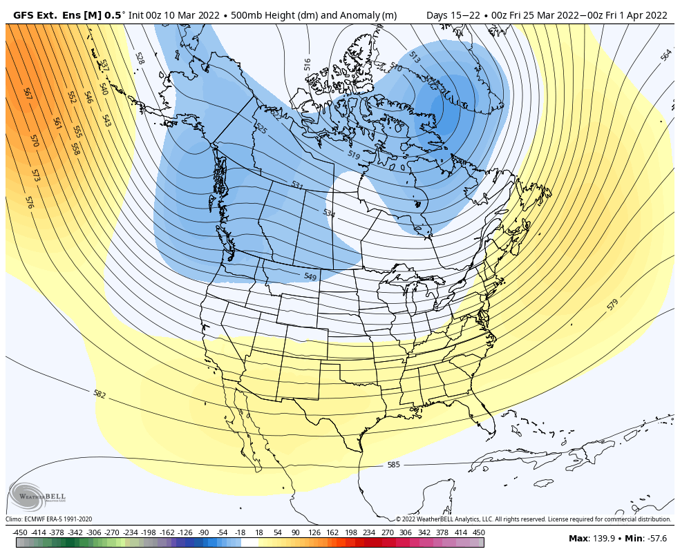 The volatile pattern continues through March with similar warm/cold spells that we’ve been seeing over the past couple of weeks.