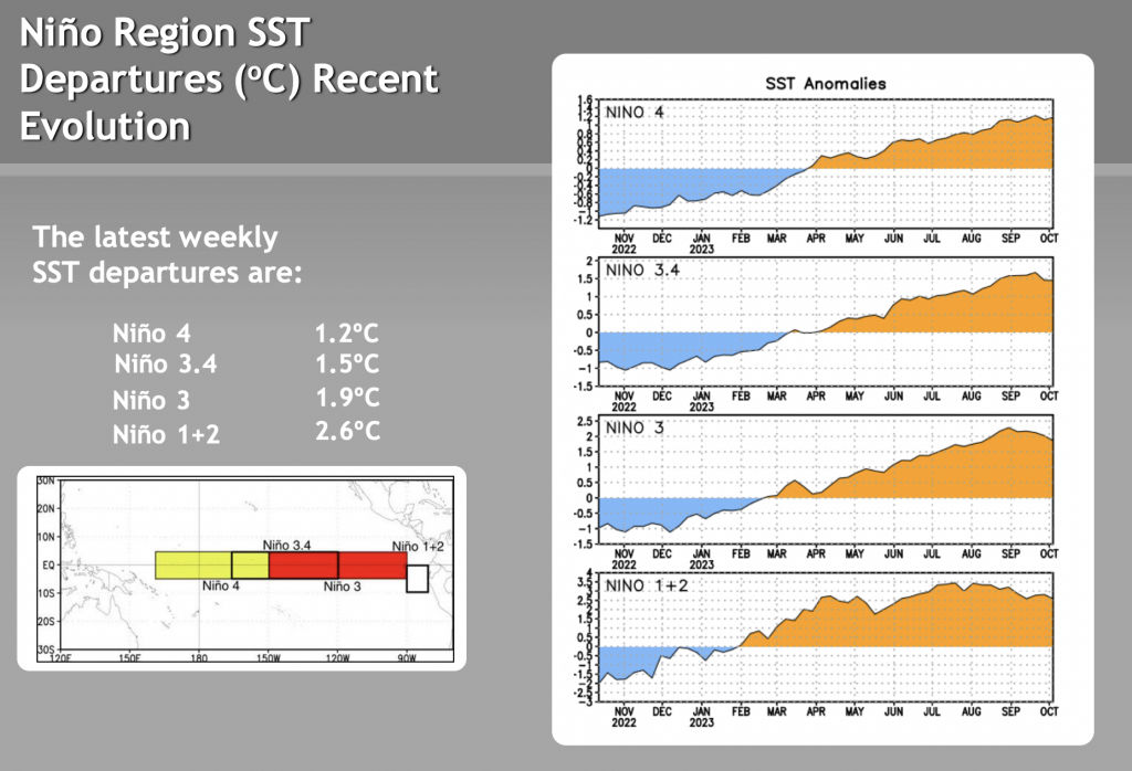 Latest Climate Prediction Center SST Analysis; ONI Index is based off Niño 3.4 region.