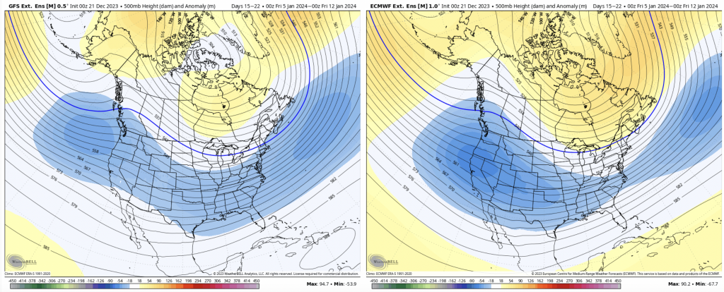 For what it’s worth, the Euro and GFS Extended keep the AO/NAO neutral to negative beyond MLK weekend, and the PNA nudges back positive around 1/11.