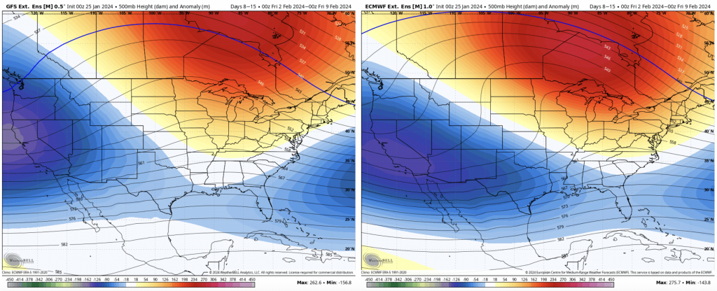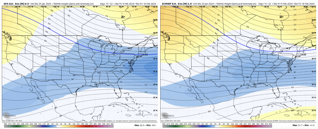 For Days 14-21, the colder and stormy pattern is back in place, for the Great Lakes as well. The PNA remains positive, though it’s close to neutral Feb 2-10, before gaining more positivity from there.