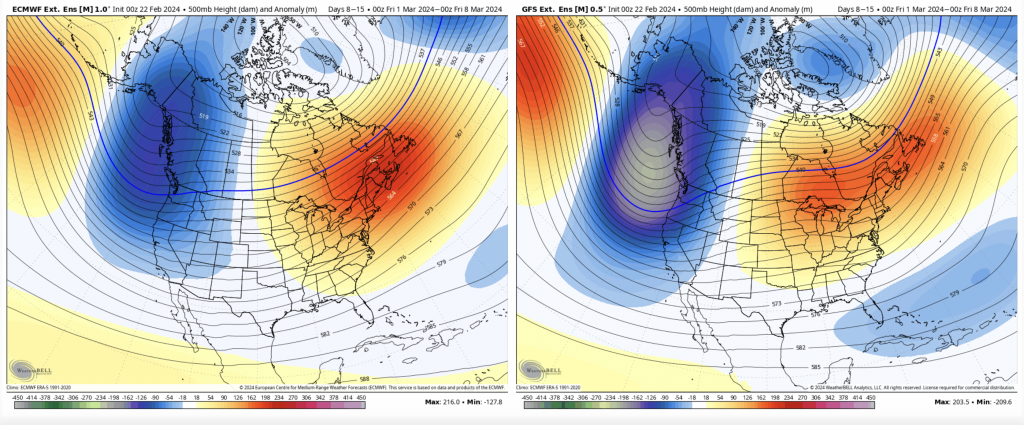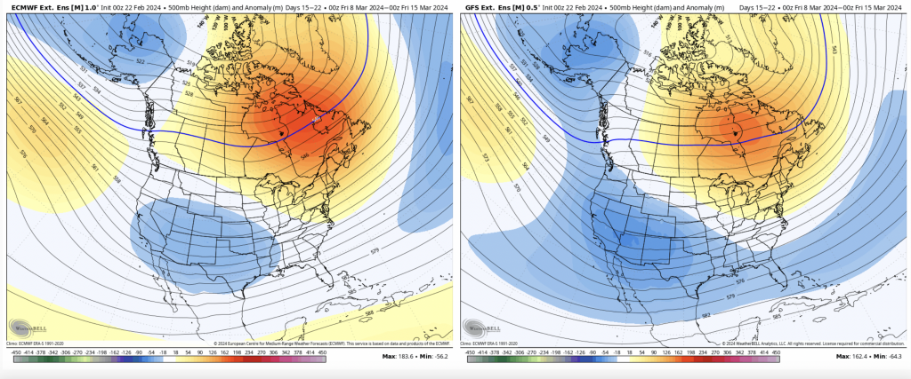 There’s been quite the back & forth with the long range over the past several days, so I’m not going to jump too far off in it. Though the first week of March is not great news, the rest of the month looks to get progressively better, at least right now.