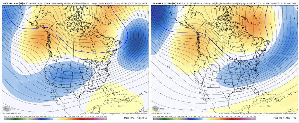 For what it’s worth (and we’ve gone down this road before without it actually happening)… the eastern trough looks to hold through mid April after it sets up later this month.