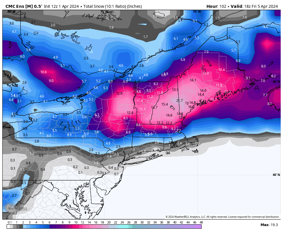 Therefore I’m going to leave the ensembles as the visual today…as run to run numbers are varying drastically. This is valid through 2pm on Friday.