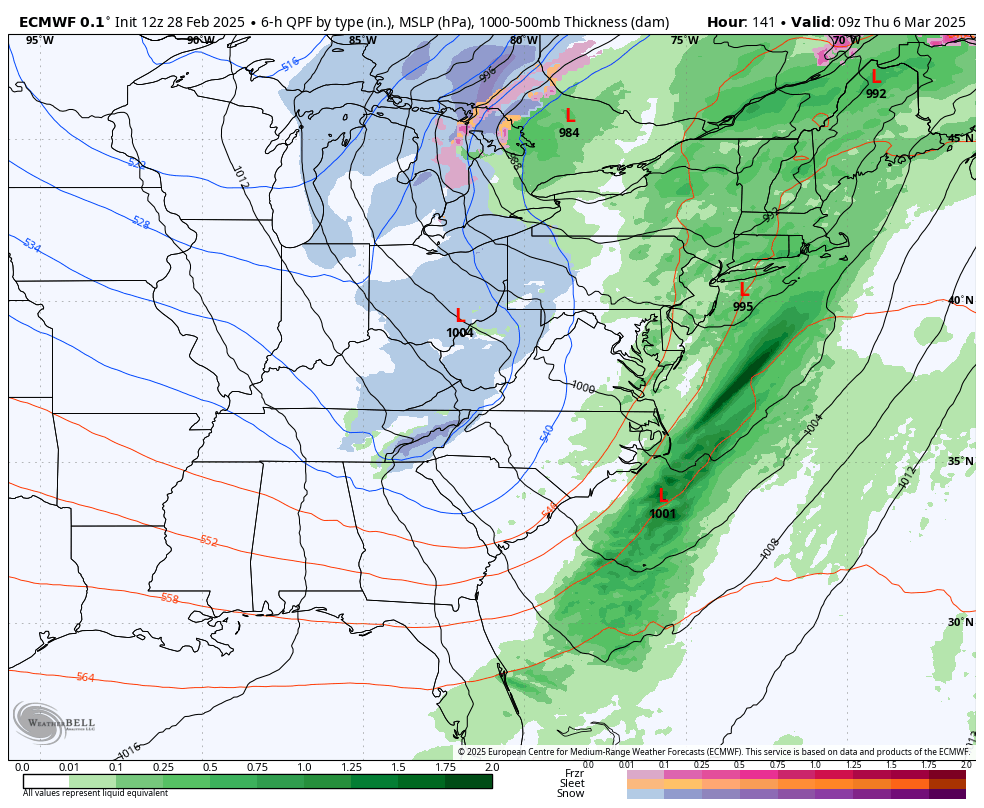 Models also have the WPO starting to go negative around March 20th, which was a clear sign earlier in the winter of cold returning to the east. But if we can’t get the cold in, then we’ll end up with rainy coastals, which clearly is not as exciting.