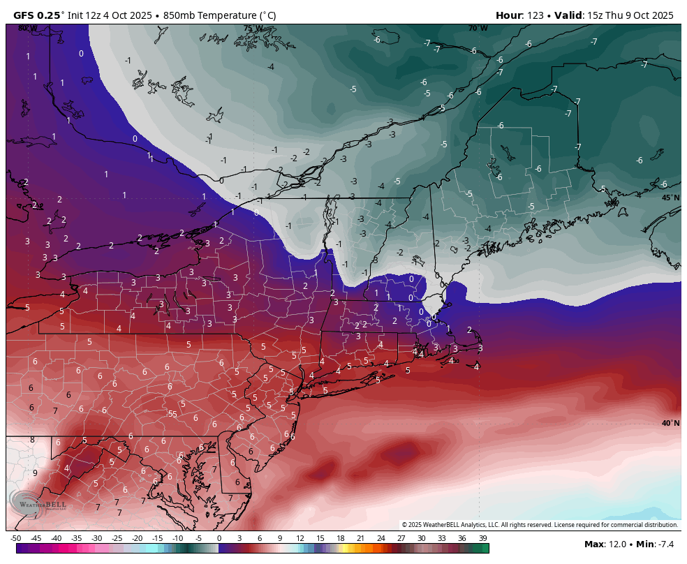 We’ll also have our deepest cooldown yet after the system on 10/8. High summits in northern NY/VT/NH/ME should drop into the 20’s Thursday morning (10/9) and remain rather cool through the day. We warm up quick, however, into the long weekend.