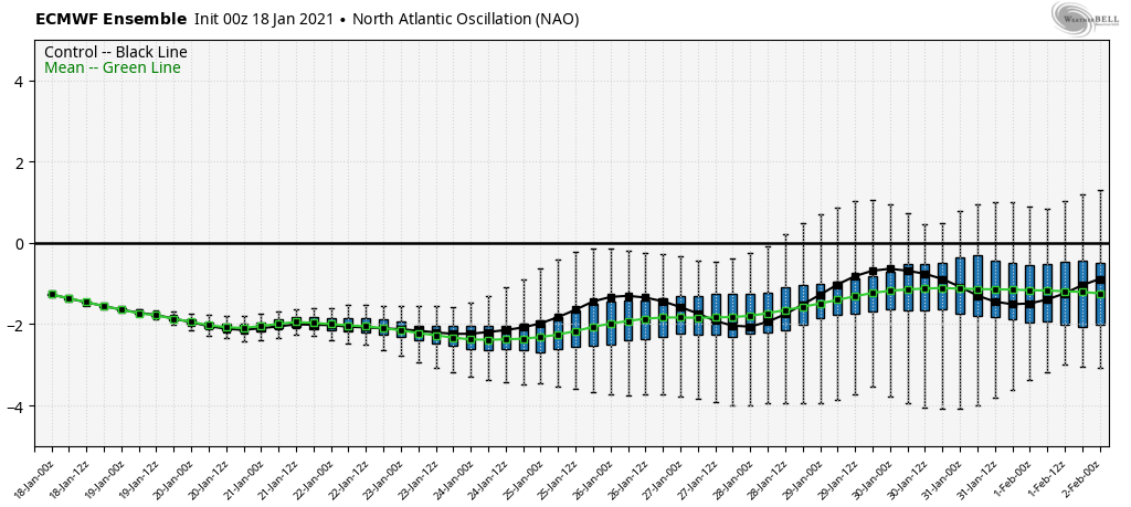 It looked more exciting previously, and while there will still be areas of energy coming through, they are being shunted to the south due to the strong blocking to our north and the arctic intrusions. The initial possibility of several light to moderate systems may just be light, at best, until we can get the NAO …