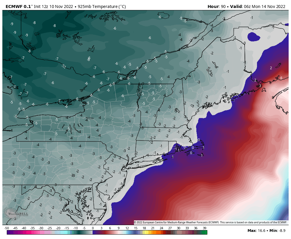 The cold slowly begins to move in this evening after getting hung up to our west earlier this afternoon. Our coldest point in the Northeast will be just around sunrise on Tuesday morning. Wind remains high, especially at higher elevations. The depth remains relatively shallow, with a sharp 0C 850mb line right along the MA …