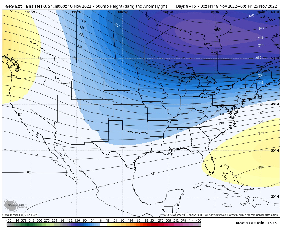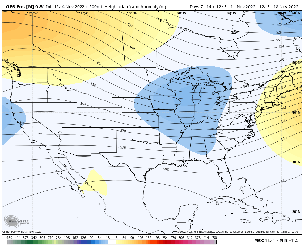 While we await the first real batch cold to come in the Northeast after the remnants of Nicole, we’ll take a quick peek at the forecast in the next 7-14 days. Overall, it’s favorable. The core of the cold continues to stay due north of the Great Lakes. I’ve chosen the GFS output because it’s …
