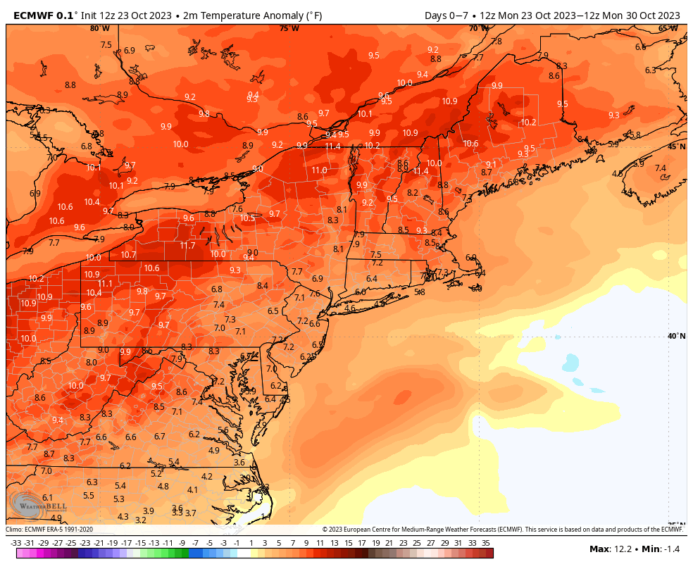 After another rainy weekend, we’re heading into a warm pattern for the end of the week. I hesitate to call it the last hurrah of warmth, because I think November will be a transition month, but it could be last prolonged stretch of it. Temperatures will be some 8-12 degrees above average through the weekend …