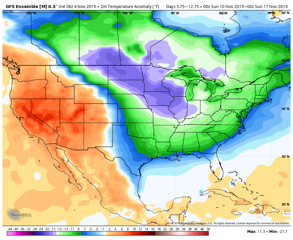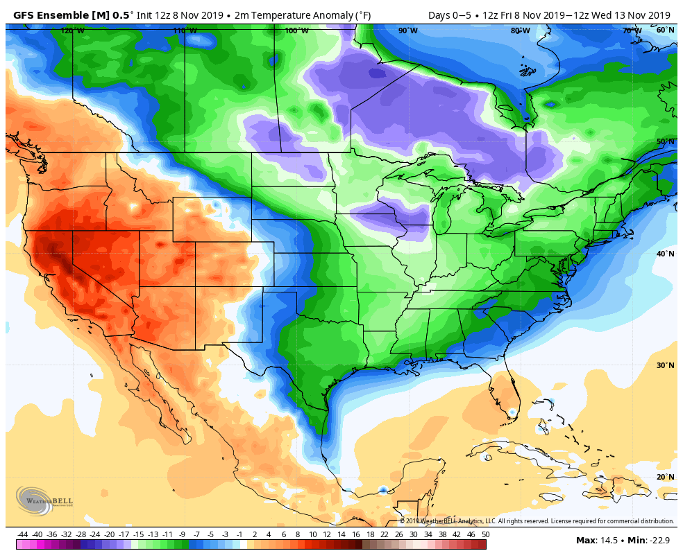 Our long awaited first round of sustained cold looks to arrive with a cold front on Friday. Delayed by the remnant low of what was Tropical Storm Olga, the trough digs into the west with record breaking cold early in the week. The first round of energy moves along the stalled front through the Midwest …